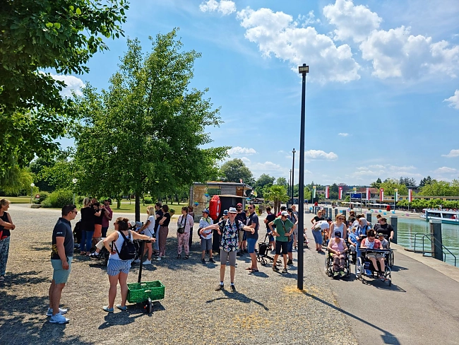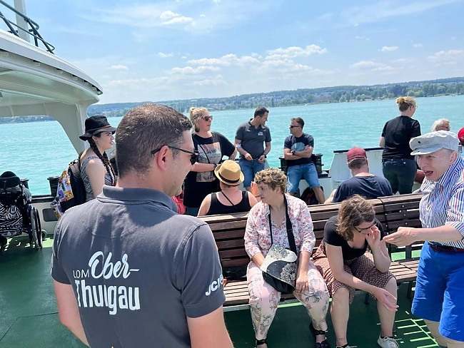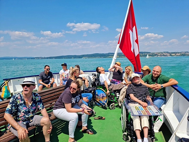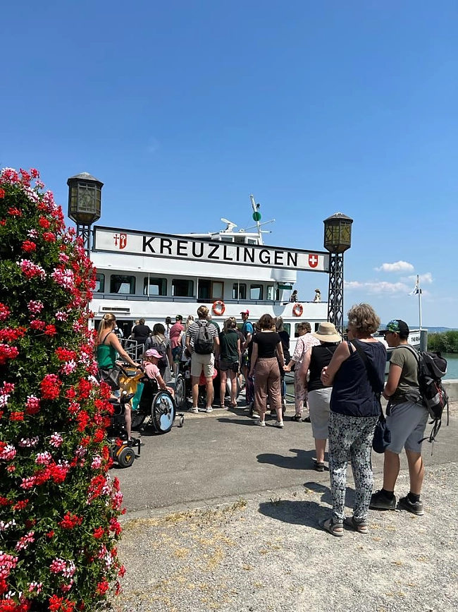 Am 17. Juni traf dann ein ganzer Fahrzeugkonvoi der Vivala am Hafen in Kreuzlingen ein. Es bedarf einer ungeheuren Organisation und Planung, einen Ausflug mit so vielen beeinträchtigten Menschen inklusive. Rollstühlen etc. durchzuführen. Ein herzliches Dankeschön gilt hier insbesondere auch den Betreuern und Helfern der Stiftung Vivala, die uns an diesem Tag eindrucksvoll unterstützten!