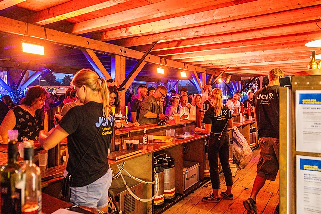 Am Freitag- und Samstagnachmittag wurden der Gewerbeverein und unsere Sponsoren mit einem Apéro begrüsst und verwöhnt. Die Besucher nutzten das gesamte Wochenende, um sich bei guter Musik zu unterhalten und neue Kontakte zu knüpfen. An der JCI-Bar wurde von Mittag bis in die Nacht gefeiert. Das Feuerwerk war ein besonderes Highlight, das von unserem Standort aus bewundert werden konnte. Die DJ’s sorgten für gute Stimmung und unser Team arbeitete fleissig, um dafür zu sorgen, dass die Gäste eine angenehme Zeit hatten.