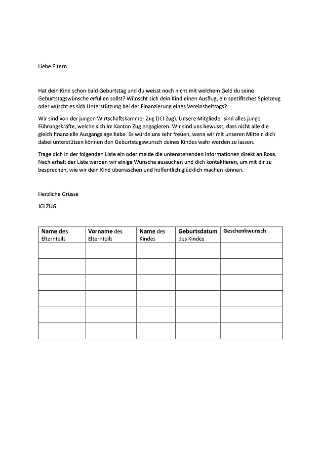 Seit diesem Jahr ist die Bezahlung auch per Twint möglich. Die Arbeitskommission Sozial entscheidet dann, welches Sofort-Hilfe Projekt im Kanton Unterstützung benötigt. Im Jahr 2023 wurde das Projekt «Geschenk Kindergeburtstag» gestartet. Eltern ohne grosse finanzielle Möglichkeiten dürfen den Geburtstagswunsch ihres Kindes melden und dieser wird versucht zu erfüllen. So konnten im Jahr 2023 bereits zwei Kinder überrascht werden. Konkret konnte einen Zoo Besuch inklusive Reise und eine Schifffahrt auf dem Zugersee mit Essen ermöglicht werden.