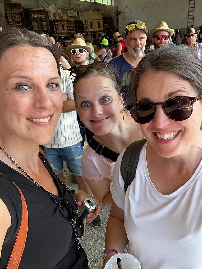 En outre, nous avons pu nous mesurer à la monte de taureaux et avons dû constater que cela aussi paraissait plus simple que ce n'était en réalité le cas. Malgré tout, nous avons tous réussi à rester sur le taureau pendant plus d'une demi-minute. Après avoir monté le taureau, nous avons bien mérité l'apéritif sponsorisé par notre OLM.