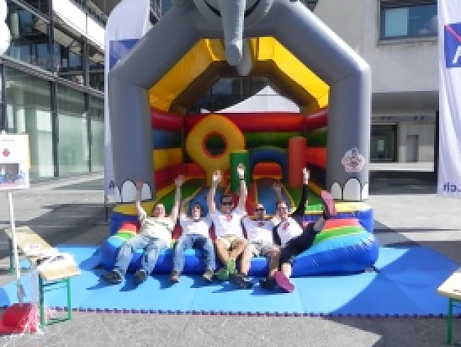 JCI Thun liess die Thuner einen Tag lang auf dem Aarefeldplatz hüpfen, sammelte Geld und informierte Interessierte über seltene Krankheiten (Förderverein für Kinder mit seltenen Krankheiten) und JCI Thun.