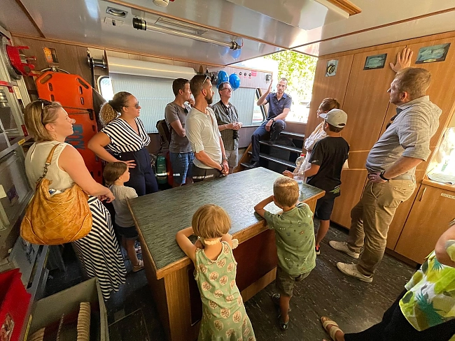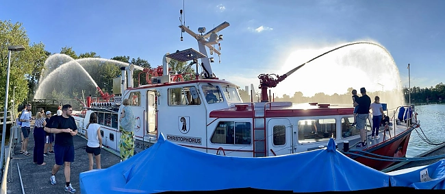 Im Jul 2022 wurde das Feuerlöschboot Christopherus der Basel-Stadt auf dem Rhein besucht. Neben spannender Führung mit Einbezug von den Kindern durch die Kantonale Berufsfeuerwehr gab es auch reichlich Action. Inbesondere als die drei Wasserwerfer aktiv wurden und so das frische Rhywasser gut 100m durch die Luft auf die andere Seite des Rheinufers beförderten.