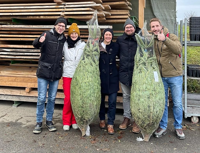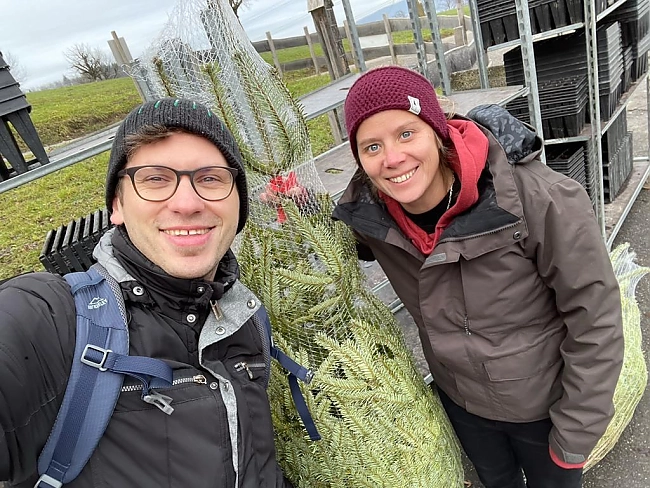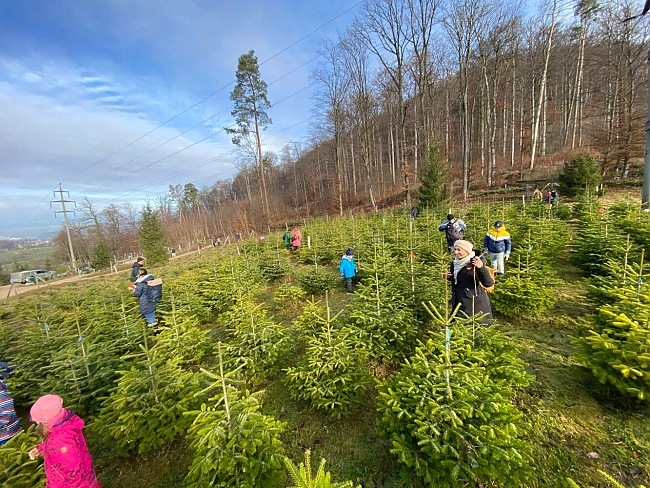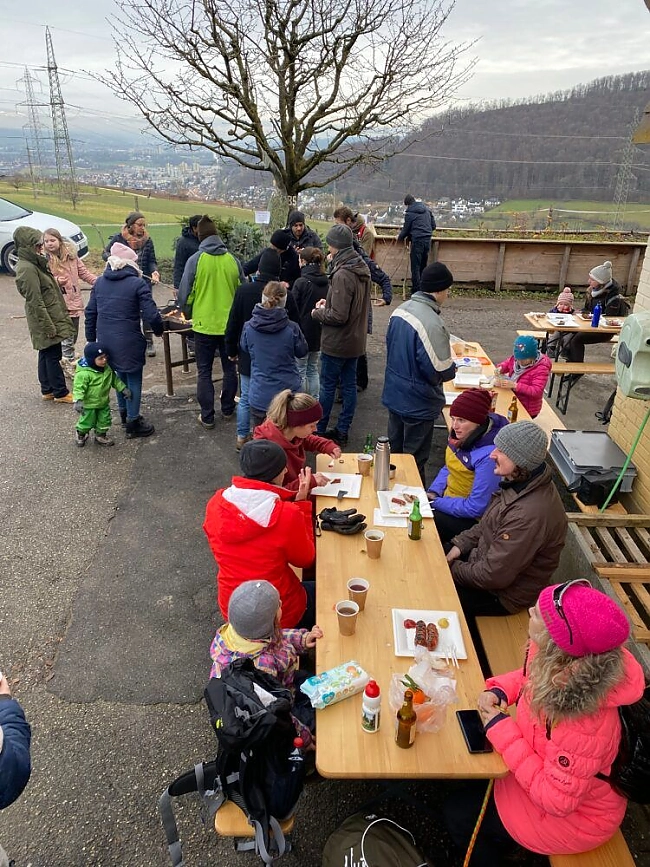Im Dez 2022 besuchen wir daher den Hof Ebnet bei Pratteln mit kleiner Wanderung, Weihnachtsbaumschlagen und anschliessender Stärkung. So gab es nach getaner Arbeit Stockbrot, Früchtepunsch, heisse Klöpfer und jede Menge gute Laune trotz frostiger Temperaturen.