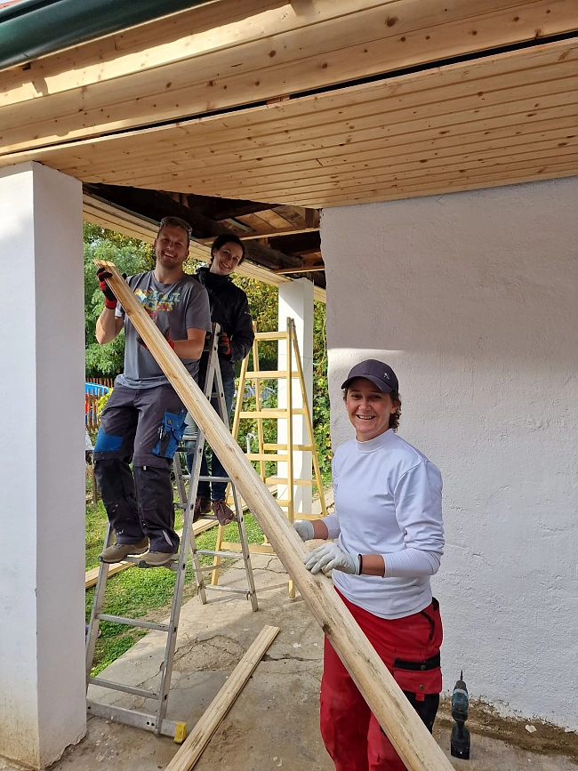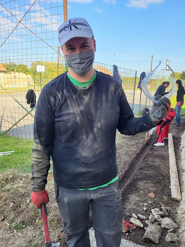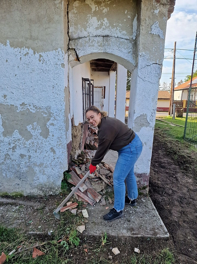 Zu den zusätzlichen Arbeiten am zweiten Tag gehörten: Holzvertäfelung, Verteilen von Kies, Wiederaufbau von Bänken, Beseitigung von Müll, Reinigung und Lackierung von Holzbalken. Ein Koordinator, Tifó, von InDaHouse Ungarn, unterstützte das Team von acht JCs während der zwei Tage. Er leistete fantastische Arbeit, indem er die Anweisungen schlank und auf den Punkt brachte.