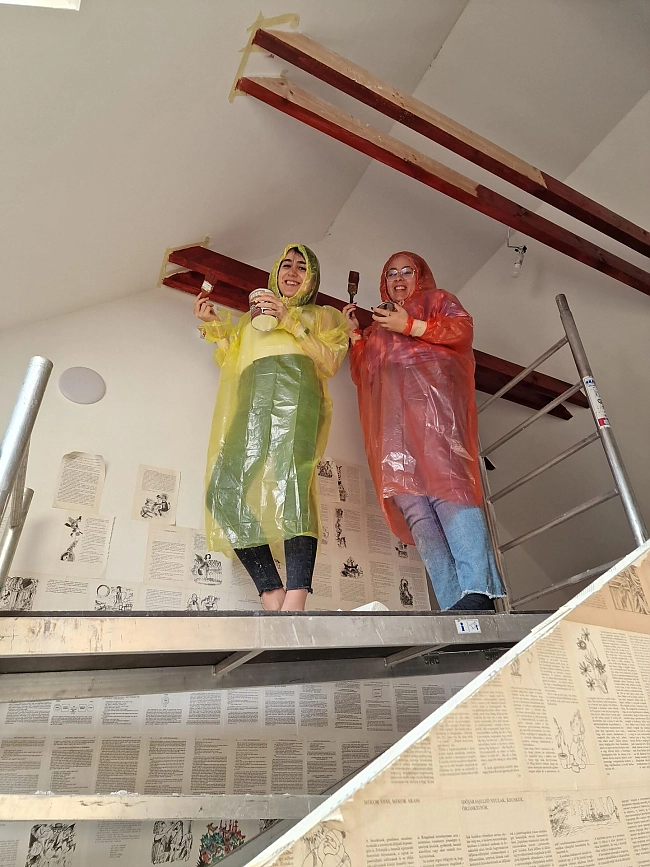 Les travaux supplémentaires du deuxième jour comprenaient : le lambrissage, l'épandage de gravier, la reconstruction de bancs, l'élimination des déchets, le nettoyage et la peinture des poutres en bois. Un coordinateur, Tifó, de InDaHouse Hongrie, a aidé l'équipe de huit JCs pendant les deux jours. Il a fait un travail fantastique en donnant des instructions concises et précises.