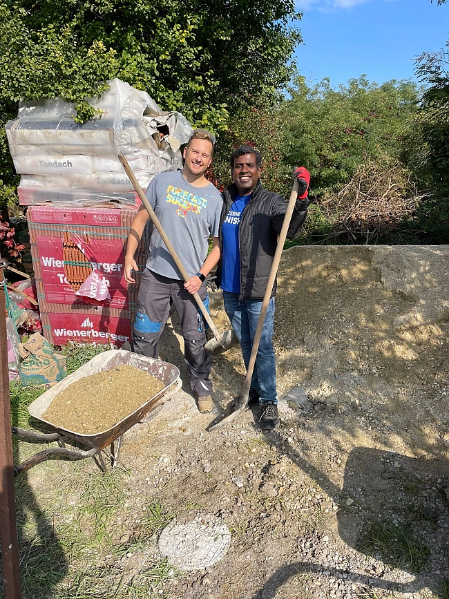 - Mit Schubkarren wurden ~4 Tonnen Beton transportiert
