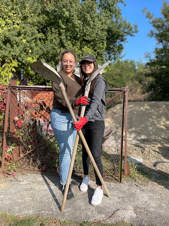 Eineinhalb Tage lang konzentrierten sich die JCs auf die Renovierung eines Tauschladens, den InDaHouse einrichtet, um der Gemeinschaft, der sie helfen, zu helfen. Der Arbeitstag begann mit der Freilegung eines Weges für einen Gehweg, der Verlegung von Beton, dem Abriss beschädigter Wandelemente und der Entfernung alter Rohrleitungen und Zäune.