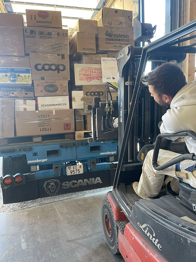 Dass die JCI, welche bereits seit Jahren soziale Projekte ins Leben ruft und fördert, hier in irgendeiner Form helfen will, schien für alle völlig klar. So erreichte uns am 28. Februar ein Telefonat von André Martinz, EVP Zone 3, ob wir nicht Lagerflächen zur Verfügung stellen könnten. Zu diesem Zeitpunkt handelte es sich lediglich um eine Anfrage. Trotzdem haben wir uns gleich auf die Suche gemacht und innerhalb von 2 Stunden 1000m2 Lagerflächen an drei Standorten organisiert. Wie es der Zufall wollte, meldete sich am selben Abend das Logistikunternehmen «LOG Logistik ohne Grenzen» beim Senator Lasse Pfenninger mit dem Vorschlag, Hilfsgüter zu sammeln und an die ukrainische Grenze zu bringen. Uns wurde sofort klar, dass wir eine solche Möglichkeit nicht nochmals erhalten werden. Wir kombinierten die zwei Projekte und trugen diese dem Nationalkomitee vor. Mit der positiven Rückmeldung erarbeitete die JCI SH ein Konzept und stellten zwei Hilfsgüter Annahmestellen in Schaffhausen zur Verfügung, bei welchen 24 Stunden 7 Tage die Woche Ware entgegengenommen werden konnte. Durch die Kommunikation an alle JCI in der ganzen Schweiz dauerte es nur einen kurzen Augenblick, bis Rückmeldungen aus der gesamten Schweiz bei uns eingingen. Der Tatendrang von allen hat uns überwältigt. Neben unserer eigenen Sammelaktion im Kanton, koordinierten wir die Anlieferungen anderer LOMs von denen fast täglich Lastwagen, Transporter und Personenwagen mit Hilfsgüter bei uns ankamen. Zusammen mit dem Logistikunternehmen hat sich unsere gesamte LOM (Schaffhausen) am Verlad der Sattelschlepper, welche die Hilfsgüter an die ukrainische Grenze bringt, beteiligt. Bis zum 17. März hat das Logistikunternehmen LOG bereits 22 Sattelschlepper, mit 528 Tonnen Hilfsgüter an die ukrainische Grenze gefahren.