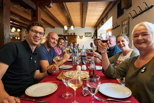 Gestartet sind wir am Samstag, den 4. Juni, in Recherswil (Solothurn) mit einem Kleinbus samt Anhänger für Gepäck. Dieser wurde von unseren Senatoren, Georg Kaufmann und Peter Luginbühl, gefahren. Ganz im Sinne des Themas der EuKo, «Food for Generations», haben wir uns auf eine LOM2LOM-Reise in Richtung Brügge gemacht mit verschiedenen Stopps zum Thema. So haben wir ein biologisches Weingut im Elsass (FR) besichtigt und eine klassische Klosterbrauerei in Aubel (BE) mit regionalen Produkten.