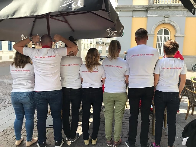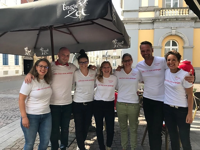 Am ersten Abend konterten wir den Frust mit viel Alkohol. Am nächsten Tag mussten wir dann zunächst das Allernötigste ersetzen, angefangen bei Socken, Unterhosen und Zahnbürsten. Und da in Belgien am Pfingstmontag alle Geschäfte geschlossen sind, mussten wir dazu zurück nach Luxembourg. Nachdem diese Erledigungen getätigt waren, hellte sich die Stimmung wieder auf. Schon kurze Zeit später schlug der Frust in Galgenhumor um und so warteten bei unserer Ankunft in Brügge bereits T-Shirts mit der Aufschrift «Lass dich nicht abhängen» und «Sorry, ist noch im Anhänger» auf uns.