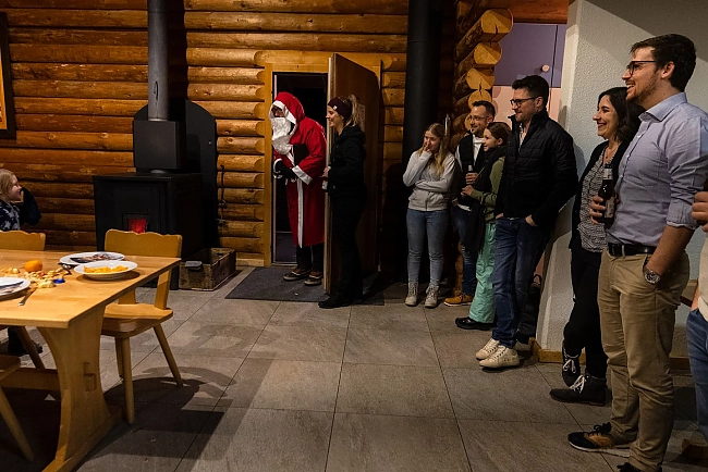 Eine abgelegene Waldhütte, viel Schnee, ein Kaminfeuer und schon ist das Ambiente perfekt! Die kleinen konnten es kaum erwarten bis der Samichlaus (natürlich auch ein JCI) aus dem Wald gelaufen kam und sein grosses Buch mit den Mitteilungen für die Kindern hervor nahm. Erstaunt lauschten sie über ihre guten und weniger guten Taten des vergangenen Jahres. Alle waren sie überglücklich als sie letztlich einen selbergemachten Grittibänz und Lebkuchen bekommen haben. Im Anschluss gab es für Gross und Klein einen gemeinsamen Raclette Plausch, traditionell auf Rechaud-Kerzen.