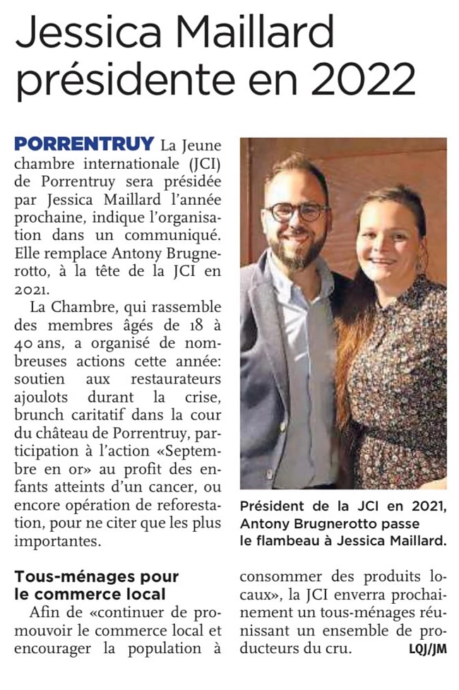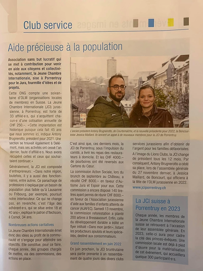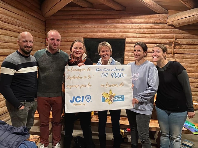 Die Sensibilisierung für das Thema Kinderkrebs erfolgt auf internationaler Ebene, insbesondere im Monat September durch die Aktion Septembre en Or (golden September). In Zusammenarbeit mit der AJAFEC, eine jurassische Organisation, die Familien mit krebskranken Kindern unterstützt, hat die JCI Porrentruy in 2021 eine Mittelbeschaffung für die Forschung in der pädiatrischen Onkologie durchgeführt. Ein Info-Flyer sowie personalisierte Sparbüchsen sowie 5'000 goldene Bänder wurden hergestellt. Diese wurden in rund 150 lokalen Geschäften und Tankstellen im Jura und im Berner Jura aufgestellt und waren ganzen September sichtbar.
