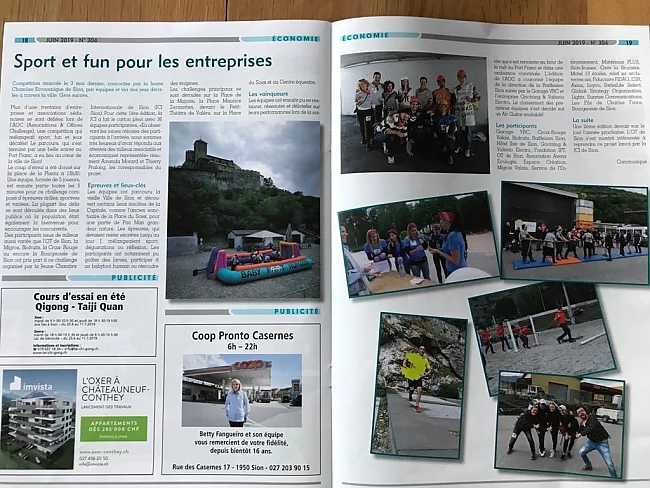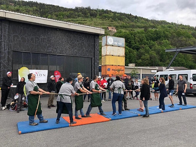 - Plus de 35 équipes composées de 5 personnes (au total :180 participants) issues d'entreprises et associations basées à Sion: Garage VRC, Croix-Rouge Valais, Biofruits, Raiffeisen Sion, Hôtel Ibis de Sion, Grichting & Valterio Electro, Fondation IPT, OT de Sion, Association Avenir Ecologie, Espace Création, Migros Valais, Service de lEnvironnement, Matériaux PLUS, Sion-Jeunes, Cave la Brunière, Motel 13 étoiles, mbd sa architectes sia, Fiduciaire FIDAG, ESR, Axius, Loyco, SwissLife Select, Global Strategy Organization, Lightz, Sunrise Communications, Les Fils de Charles Favre, Bourgeoisie de Sion.