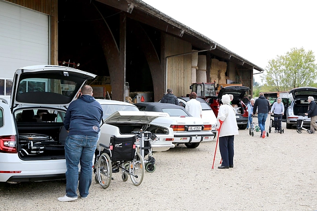 Somit haben wir für den Anlass als erstes aussergewöhnliche Fahrzeuge aufgetrieben. Vom Nagelneuen SUV bis hin zum Old- und Jung-Timer, war alles dabei. Selbstverständlich auch eine ganze Menge an Rollatoren und sonstigen Gehhilfen….