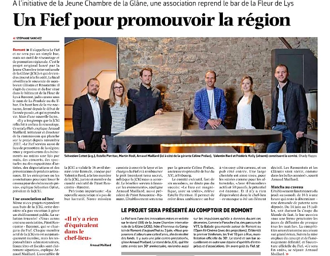 Fort de ce constat et ne souhaitant pas rester les bras croisés, la JCI Glâne a créé, en novembre 2017, la commission « lieu de rencontre ». Cette commission avait pour but détudier une éventuelle création dun lieu de rencontre dans la région glânoise. Après de nombreuses discussions, la commission a décidé dapporter concrètement sa pierre à lédifice. Cest ainsi que le 16 avril 2018, sur demande de la commission « lieu de rencontre », la JCI Glâne a convoqué une assemblée générale extraordinaire. Celle-ci a soutenu massivement le projet de création, à Romont, dun lieu de rencontre dénommé « le Fief », qui est un bar à vin dont le but est de proposer des produits du terroir ainsi que des activités culturelles promouvant les personnalités culturelles régionales et la région glânoise.