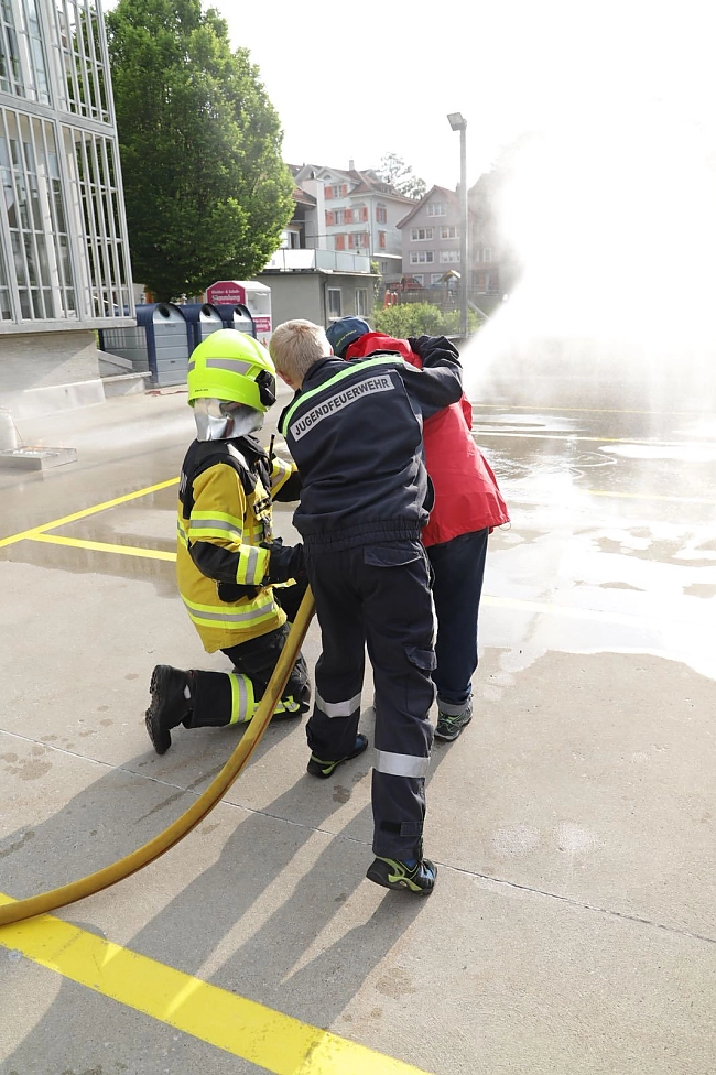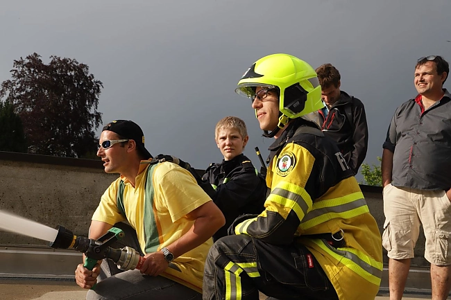 Die Junge Wirtschaftskammer Rheintal (JCI Rheintal) ermöglichte rund 20 Mitarbeitern und Bewohnern des Vereins Rhyboot in Altstätten einen aussergewöhnlichen Ausflug zur Jungfeuerwehr Walzenhausen. Bei den Mitarbeitern und Bewohnern des Vereins Rhyboot handelt es sich um handicapierte, körperlich und geistig beeintächtigte Personen. Während eines lauen Sommerabends hatten die Bewohnerinnen und Bewohner die Möglichkeit, an verschiedenen Übungen der Jungfeuerwehr teilzunehmen. So wurden drei Posten eingerichtet, an denen die unterschiedlichen Fertigkeiten der Jungfeuerwehr demonstriert und gemeinsam geübt wurden. Am ersten Posten wurde ein übervoller Wasserschacht abgepumpt die Teilnehmer staunten nicht schlecht über die enormen Wassermengen, die die verhältnismässig kleine Pumpe nach fachgerechter Installation abtransportieren konnte. Am zweiten Posten wurde dann der Umgang mit dem Feuerwehrschlauch geübt: Der eine oder andere Schlauch musste in gemeinsamer Anstrengung durch zwei bis drei Personen fixiert werden, so stark war die Kraft des austretenden Wassers. Es wurde dann gar ein echtes Feuer gelegt, welches es zu löschen galt. Der beim Löschen aufkommende Sommerabendregen unterstützte zwar die Löscharbeiten, trotzdem kam der eine oder andere ins Schwitzen! Am dritten Posten wurde dann noch die Versorgung von verletzten oder ermüdeten Personen simuliert. Es zeigte sich, dass viele Teilnehmer ihr Wissen aus dem Nothelferkurs zielgerichtet einzusetzen wussten. Auch das für die Übungen bereitgestellte Löschfahrzeug der Feuerwehr wurde intensiv begutachtet und analysiert. Nach getaner Arbeit durften die zufriedenen und müden «Rhybootler» gemeinsam mit der Jungfeuerwehr und der Jungen Wirtschaftskammer Rheintal bei Wurst und feinem Nussgipfel das Erlebte Revue passieren lassen. Beim gemeinsamen Essen wurden rege Kontakte zwischen den jungen Feuerwehrlern, der Jungen Wirtschaftskammer Rheintal und den Rhyboot-Bewohnern geknüpft. Die mit dem Anlass angestrebte Integration der Beeinträchtigten, wurde damit vollends erreicht. Die Junge Wirtschaftskammer Rheintal freut sich, mit diesem «Social Event» einen wirklich gelungenen Anlass für alle Beteiligten geschaffen zu haben.