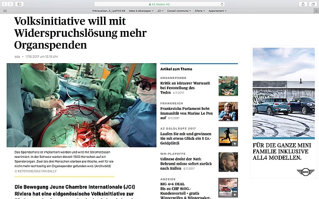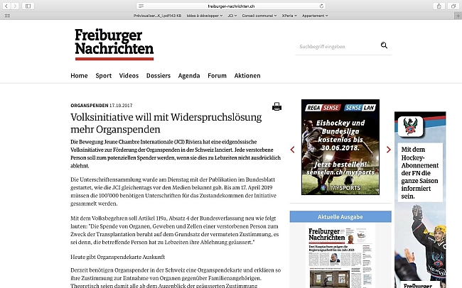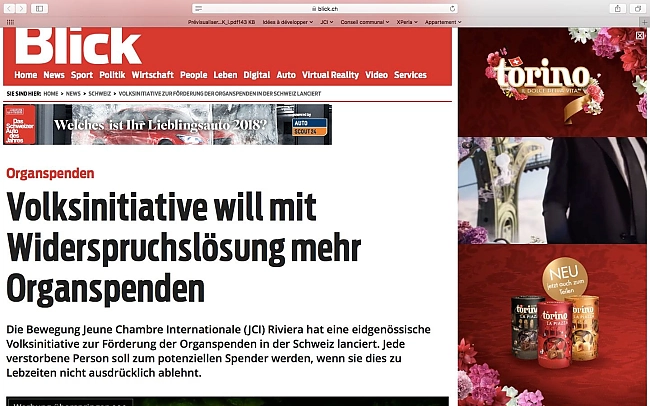 So hat die Jeune Chambre Internationale Riviera (JCI Riviera) eine Volksinitiative gestartet, um 100.000 gültige Unterschriften zu sammeln, damit das Volk darüber abstimmen kann, ob man grundsätzlich als Organspender gilt, es sei denn, man hat seinen Widerspruch in einem offiziellen Register kundgetan.