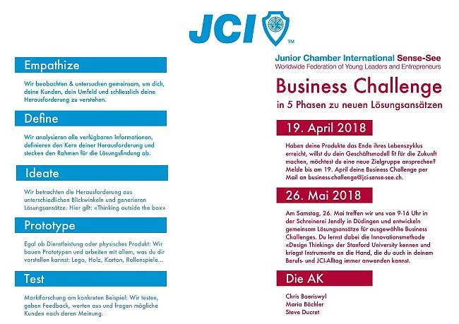 Crowd Intelligence matters: Mitglieder der JCI Sense-See haben sich gemeinsam an die Entwicklung von Lösungsansätzen für Herausforderungen in ihren Unternehmen gemacht. Dabei haben sie die Innovationsmethode «Design Thinking» der Stanford University kennengelernt und erfahren, welche Instrumente sie auch im Berufsalltag anwenden können, um kreative und kundenorientierte Ideen zu finden und umzusetzen: Personas, Prototypen, Pitches, schnelle Markttests, Feedbackmethodik etc.