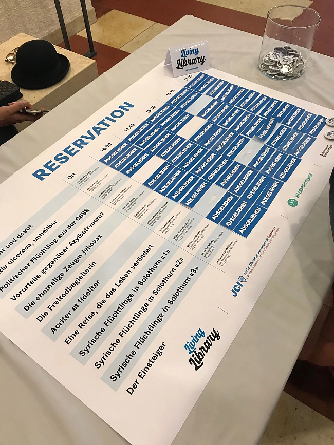 «Never judge a book by its cover» lautete das Motto der Solothurner «Living Library». Im Rahmen der renommierten Solothurner Literaturtage initiierte JCI Solothurn den Anlass zum ersten Mal überhaupt. Das Projekt konnte dank unzähliger Arbeitsstunden (rund 400) zu relativ tiefen Kosten durchgeführt werden. Dank der Unterstützung z.B. der JCI Foundation waren Budget und Rechnung ausgeglichen.