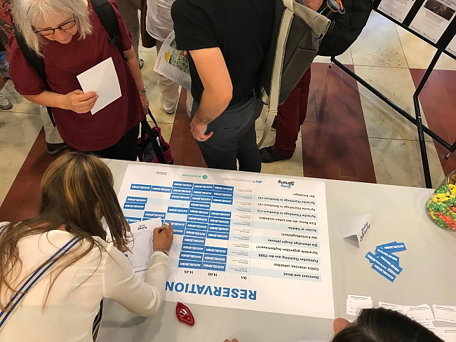 Unsere «Living Books» waren in 10 Kaffees in der Altstadt verteilt. Sie mussten nicht lange auf ihre Leser warten. Zahlreiche Besucher der Literaturtage nutzten die Gelegenheit und reservierten sich ein Buch an unserem Bibliotheksschalter im Landhaus direkt am Ufer der Aare.