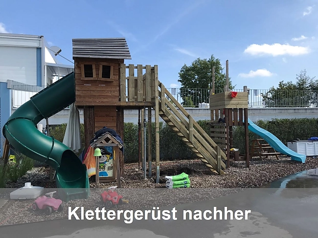 Wir haben für die Kita Atlantis in Berg einen Kinderspielplatz umgebaut. Unteranderem musste der Spielturm umgebaut und an die Sicherheitsnormen angepasst werden. Dazu haben wir einen Kiesplatz mit Feuerstelle, ein neues Spielgerät (Karussell und einen neuen Sandkasten gebaut. Herzlichen Dank allen Helferinnen und Helfern.