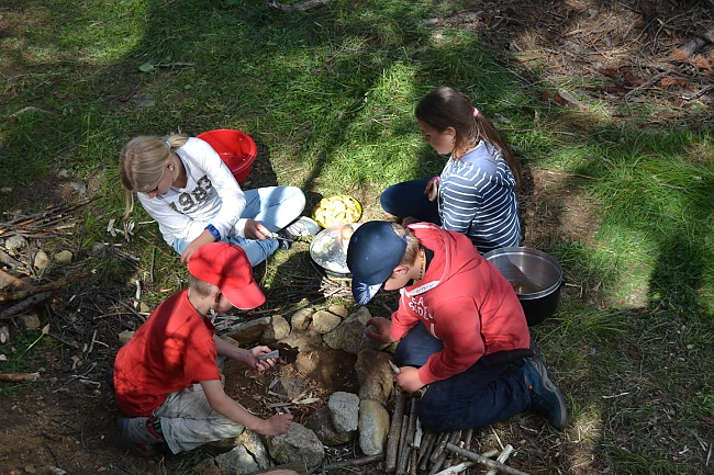 Die Kinder des Kids Nature nehmen den Wald als Verbündeten. Sie tauchen ein in die Vielfalt, die dieser zu bieten hat und macht sich auf die Spuren der Naturvölker und unserer Vorfahren. Auf verschiedenen Art Feuer machen, Flechten, Schnitzen, Schalen brennen, Spuren lesen, still sitzen und hören, was die Tiere und die Natur erzählen. Sie lernen dort, sich selbständig und kreativ zu beschäftigen.