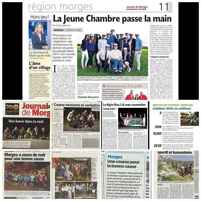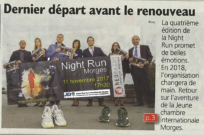 Pour les 40 ans de lOLM de Morges, nous avons mis sur pied non seulement un événement reflétant pleinement les valeurs de la JCI mais nous permettant aussi de les véhiculer à la population : une course à pied de nuit en novembre au bord du lac à Morges.