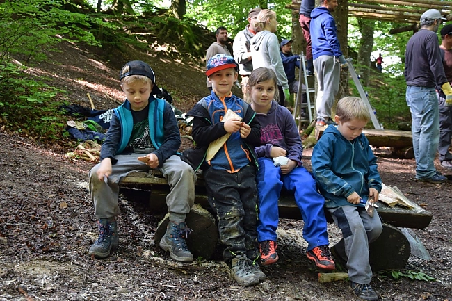 Nous avons donc décidé d'aborder ce problème comme un nouveau projet et de construire et de financer, en collaboration avec les enfants, les parents et diverses entreprises sponsors de la région, de nouveaux bancs, un petit coin tranquille, un abri, une poutre d'équilibre et une caisse verrouillable pour le stockage du matériel. Plus de 60 parents de différentes nationalités, des enfants, des jardinières d'enfants et des JCI ont aidé avec beaucoup d'enthousiasme à rénover et à nettoyer l'aire de jeux en forêt. On a pu montrer aux enfants comment réaliser des projets main dans la main avec d'autres personnes et la nature, tout en prenant soin de la nature. Le projet a été un succès total, comme le confirment les nombreux commentaires positifs des enfants, des parents, de la presse et même des sponsors ! Nous avons pu générer un impact durable au sein de la communauté de Herzogenbuchsee.