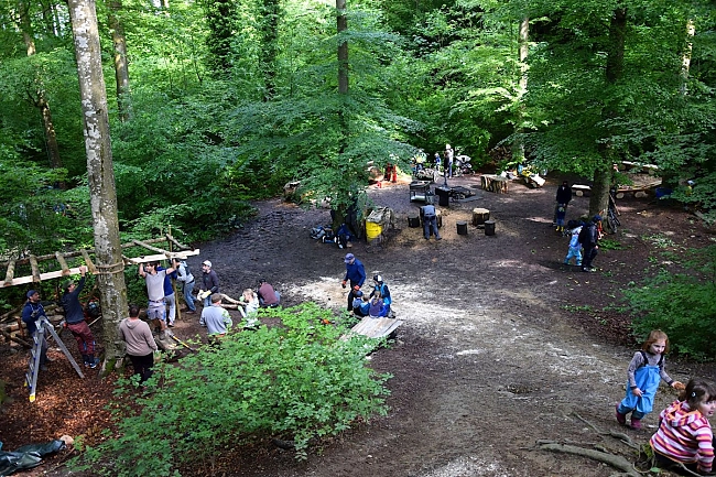 Les écoles enfantines de Herzogenbuchsee passent une demi-journée par semaine sur leur place de forêt bien-aimée dans la forêt Wysshölzli à Herzogenbuchsee. Les bancs et le chemin d'équilibre étaient en mauvais état et il manquait totalement un abri en cas de fortes pluies. De plus, de nombreux enfants étaient gênés par le fait qu'ils ne pouvaient pas aller aux toilettes ouvertes sans être surveillés. Lors de chaque visite, les enfants devaient tirer environ 50 kg de matériel dans un chariot à quatre pendant 20 minutes dans la forêt.