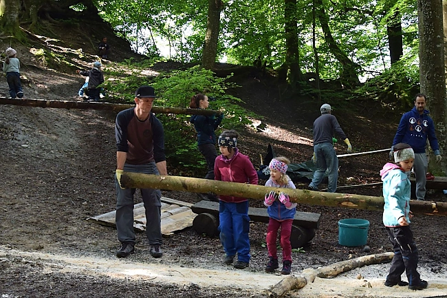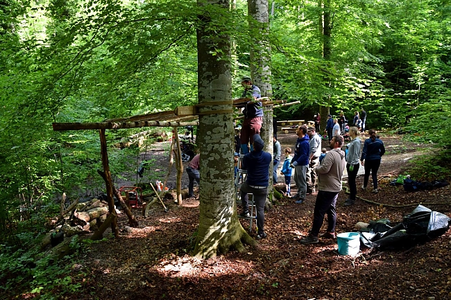 Die Kindergärten von Herzogenbuchsee verbringen einmal pro Woche einen halben Tag auf ihrem geliebten Waldplatz im Wysshölzli-Wald in Herzogenbuchsee. Die Sitzbänke und der Balancierpfad waren in schlechtem Zustand, einen Unterstand bei Starkregen fehlte ganz. Zudem störten sich viele Kinder daran, dass sie nicht unbeobachtet aufs offene WC gehen konnten. Bei jedem Besuch mussten die Kinder rund 50kg Material in einem Wagen zu viert 20min in den Wald ziehen.