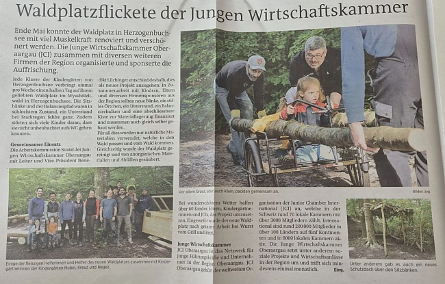 Wir entschieden uns deshalb, dies als neues Projekt anzugehen und in Zusammenarbeit mit Kindern, Eltern und diversen Firmensponsoren aus der Region neue Bänke, ein stilles Örtchen, einen Unterstand, einen Balancierbalken und eine abschliessbare Kiste zur Materiallagerung zu bauen und finanzieren. Über 60 Eltern verschiedener Nationalitäten, Kinder, Kindergärtnerinnen und JCI halfen mit viel Enthusiasmus, den Waldspielplatz zu renovieren und zu säubern. Den Kindern konnte vorgelebt werden, Hand in Hand mit anderen Menschen und der Natur, Projekte zu erreichen und gleichzeitig die Natur zu pflegen. Das Projekt war ein voller Erfolg - das bestätigen die vielen positiven Feedback von den Kinder, Eltern,  der Presse und selbst Sponsoren! Wir konnten einen nachhaltigen Impact in der Community in Herzogenbuchsee generieren.