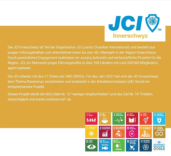 "Exit Happyland" è un progetto innovativo e sostenibile contro il razzismo, lanciato nel 2021 dalla JCI Innerschwyz. Questo progetto si oppone al razzismo e alla discriminazione, in particolare sul posto di lavoro, e mira a promuovere una consapevolezza critica delle strutture razziste nella società.