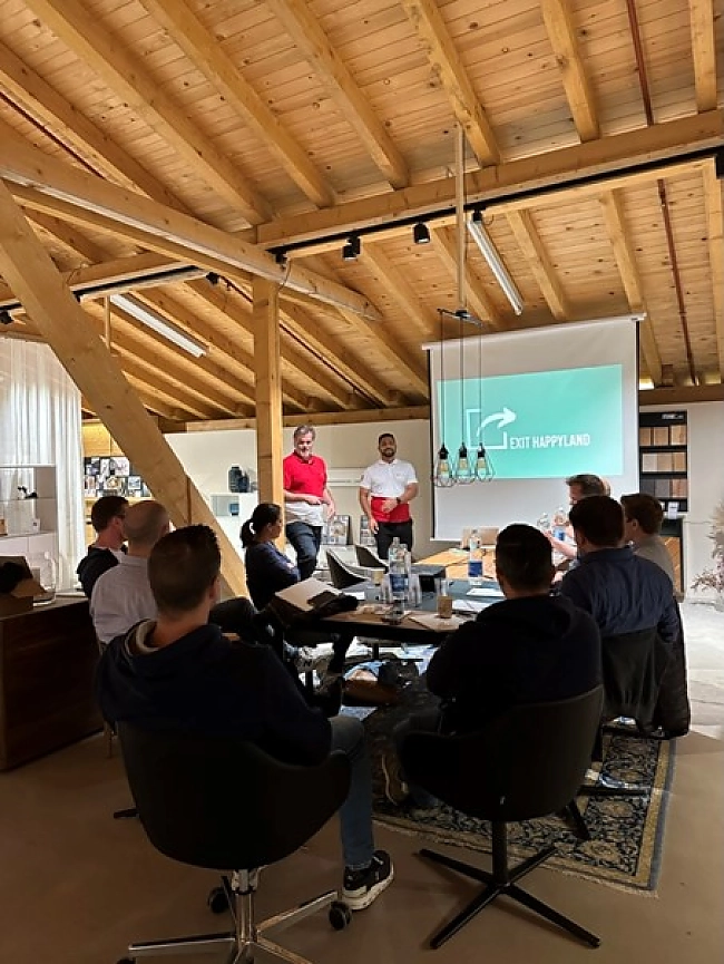 Crescita e professionalizzazione "Exit Happyland" si è evoluto da un progetto della JCI Innerschwyz a un'associazione autonoma, un passo importante verso la professionalizzazione e l'accettazione da parte delle autorità e dei sostenitori. Tuttavia, il legame con la JCI rimane intatto per continuare a portare avanti la missione e i valori originari del progetto. Il team di progetto è ancora composto da membri attivi e ex membri della JCI Innerschwyz (7 persone, ovvero circa il 25% del LOM).