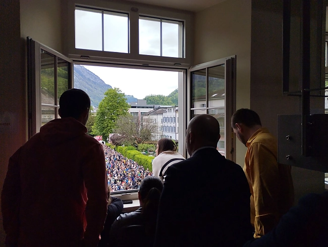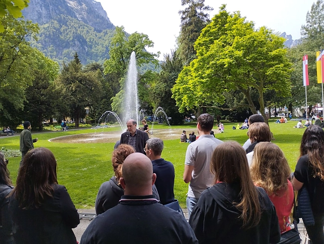 A l'exception de la visite guidée de la ville, nous avons pu couvrir toutes les activités de la manifestation grâce aux connaissances et aux activités associatives des membres de la JCI. Ainsi, à la JCI Glaris, nous avons des conseillers ruraux qui ont pu nous éclairer sur la Landsgemeinde, un sénateur qui siège au conseil de l'église de la ville et qui nous a permis de profiter de la vue imprenable depuis le clocher, ou encore plusieurs membres actifs qui ont assuré une traduction sans faille en français ou en italien. Un vrai projet OLM, donc.