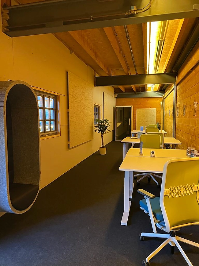 Cet espace, tout comme l’ensemble de l’infrastructure a été complètement fabriqué et aménagé par les membres de notre OLM. Plusieurs places de travail en coworking, une cabine insonorisée ainsi qu’un coin détente ont été installés afin de permettre aux exposants de se détendre hors du bruit et de se réunir hors de l’agitation de la manifestation. Cet espace complètement insonorisé se voulait propice aux échanges entre exposants.