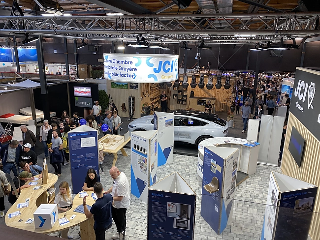 Cet espace a été mis à disposition du parc technologique Bluefactory, il s’agit d’un groupement d’entreprises actives dans le développement durable, le domaine artistique et social. Nous avions à cœur de mettre en avant cet acteur majeur du développement technologique du canton de Fribourg.